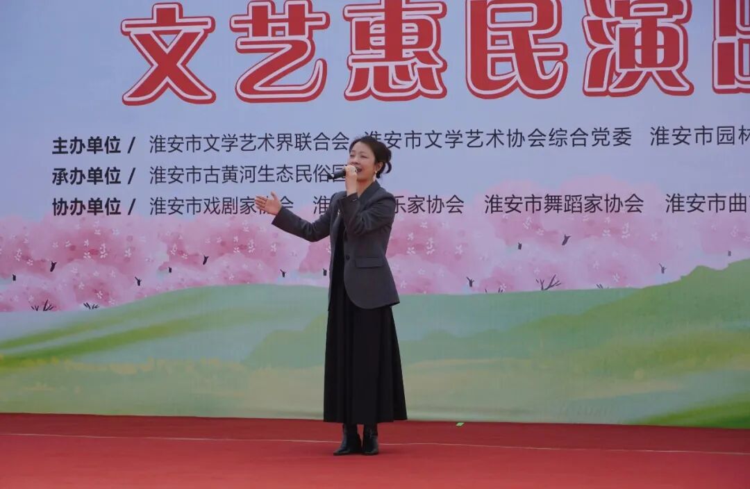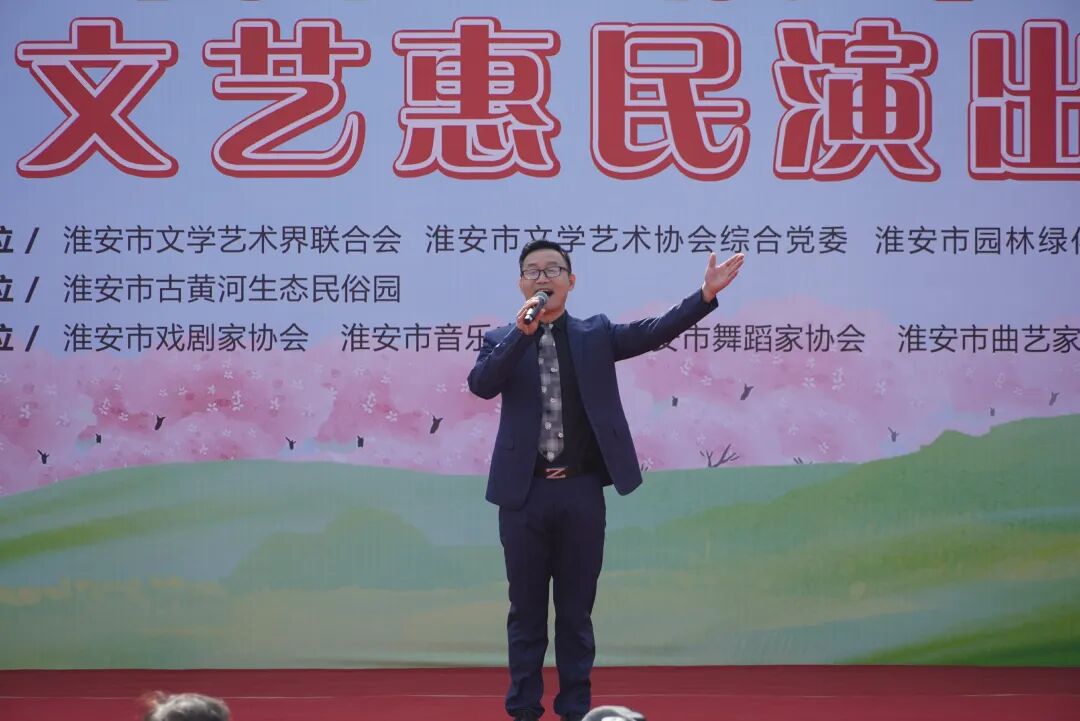 阳春三月,微风送暖,淮安市古黄河生态民俗园内繁花似锦、游人如织,3月28日上午,“春日有信 桃梨相迎”文艺惠民演出在这里温情上演。
