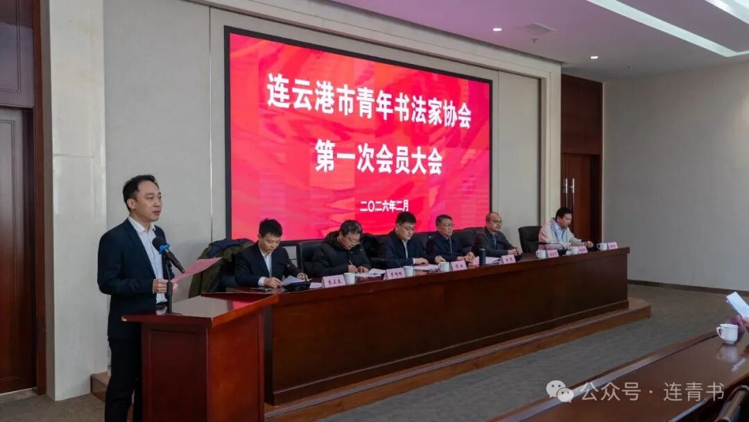 2026年2月2日,连云港市青年书法家协会第一次会员大会在连云港市海州区苍梧路36号机关办公区8号楼召开。连云港市民政局原党委书记、局长,现连云港市二级巡视员陈军;江苏省青年书法家协会副主席张星星;团市委副书记谭诚;连云港市文联副主席伏雪以及艺术界的各位嘉宾、兄弟协会代表、全市53名会员参加了本次大会。