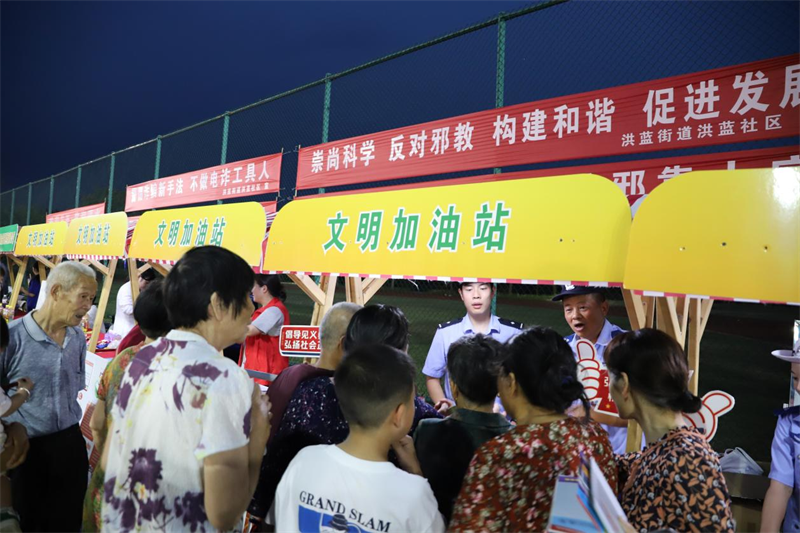 赛场外围,“文化服务驿站”的设置进一步延伸了“赛事+文化”的创新形态,志愿者们忙碌的身影成为另一道亮眼风景线。他们不仅向观众发放全民健身知识手册、文明社区建设宣传单,还精心组织趣味问答互动,将健康理念、文明新风通过轻松有趣的方式传递给每一位居民,实现了文化宣传与赛事服务的深度结合。“以前觉得篮球赛离我们很远,现在在家门口既能看激烈比赛,又能赏精彩演出、学实用知识,还能和邻居一起为球员加油,感觉整个社区都充满了活力!”洪蓝街道居民陈巧伢的真切感慨,道出了这场“篮球文化活动”的惠民初心,也印证了文体融合模式的可行路径。