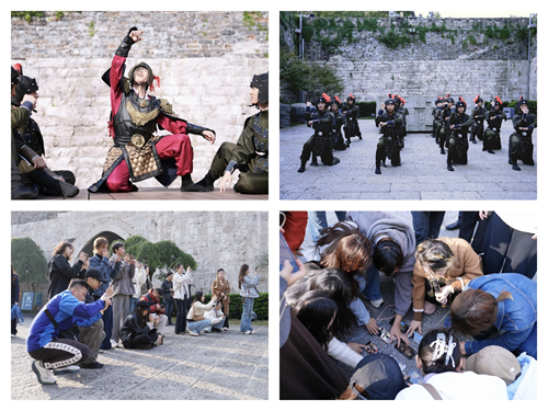 本次培训突破传统课堂模式,强调“学练结合、即学即用”。学员以南京市文联重点创作项目——南京艺术学院舞蹈《中华门》为蓝本,分组策划1分钟影像脚本,并与主创团队深度交流,实现理论到创作的快速转化。实地拍摄环节,学员在导师及市摄影家协会会员的指导配合下,赴中华门完成影像创作,现场解决镜头语言、叙事节奏等实际问题。活动还设置“舞爱金陵”第二届城市原创舞蹈影像作品点评环节,通过专家反馈助力学员精进技艺。