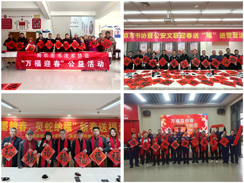 坚持以人民为中心的创作导向,持续开展新春走基层活动,组织书法家深入高铁、地铁、军营、社区等一线,为群众送福字、写春联。据统计,累计送出福字、春联超十万份。活动受到新华网、紫金山新闻等多家媒体报道。广大会员和群众也通过抖音、微信等平台广泛传播,形成良好社会反响。市书协因此被中国书法家协会表彰为“万福迎春”公益活动先进集体。
