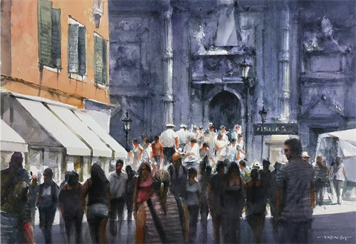 季鹏《威尼斯 通往圣莫伊斯教堂的桥》 55x36cm