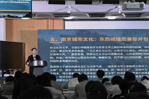4月22日,南京市文艺评论家协会“文艺评论进高校”系列活动在东南大学举办。南京大学中国新文学研究中心执行主任张光芒教授应邀主讲《如何索解南京城市文学的灵魂》,带领现场师生深度探寻南京作为“世界文学之都”的独特精神内核与文学气质。