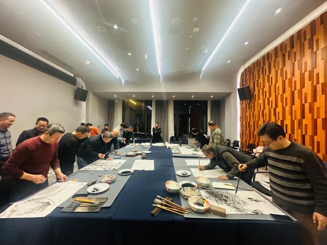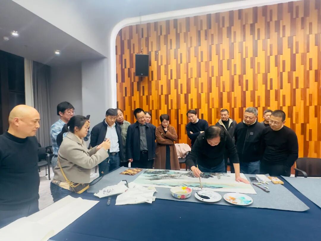 观展后,四地文联领导和书协、美协代表们在澄德庄园举行了座谈交流会。围绕“文艺服务于经济社会发展”和四地艺术交流等问题进行了讨论,现场氛围热烈。座谈会结束后,艺术家们开展了笔会交流。