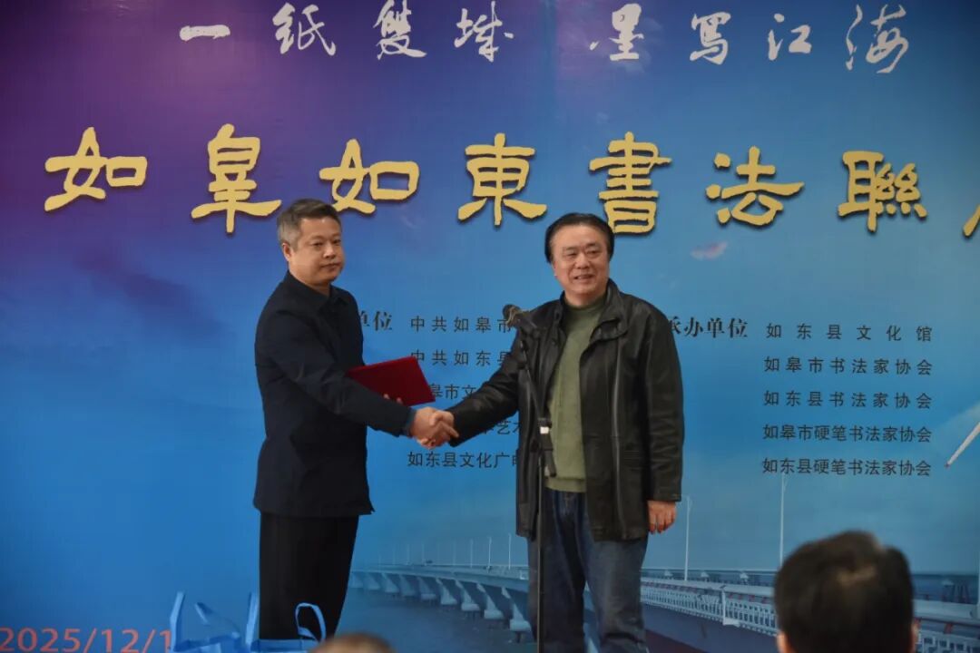 如皋与如东一衣带水,地缘相近、人缘相亲、文脉相通。如皋素有江苏历史文化名城”的美誉,诞生了诸多文艺名人,在书画领域源远流长。如东如皋两地书法联展,不仅是一次艺术的集中展示,更是两地深厚情谊与文化共鸣的生动体现,对于推动区域文化协同发展具有十分重要而深远的意义。