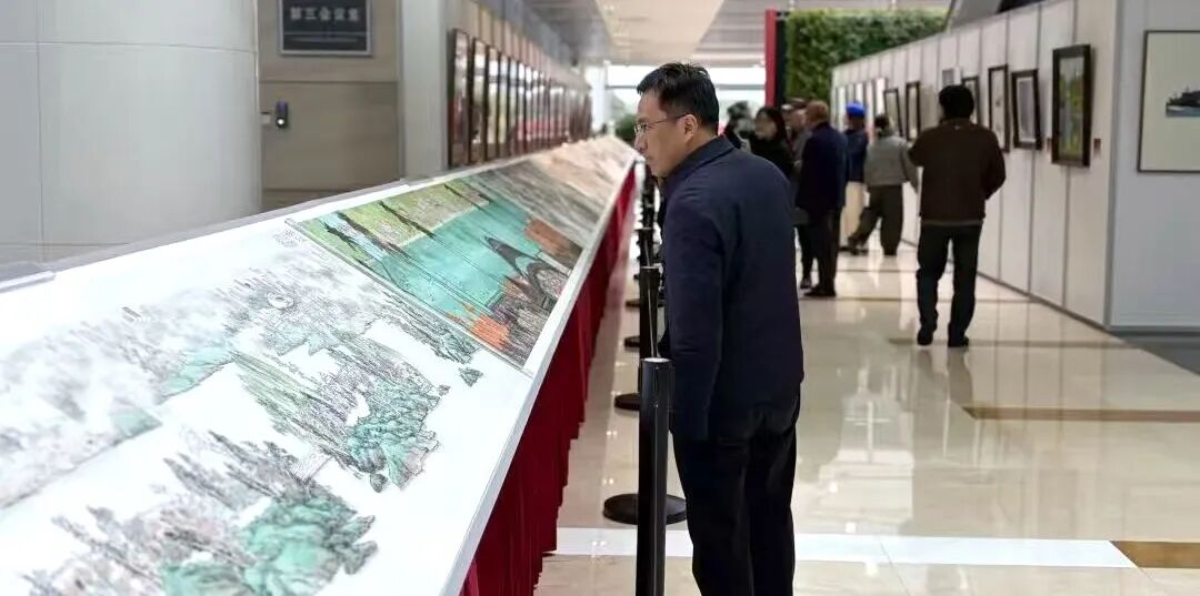作为南通市重要的文化品牌活动,南通书画名家作品迎春邀请展已坚持举办十四年,成为展现新时代文艺工作者的创作风采、彰显城市文化底蕴的重要窗口。本次展览的核心亮点为40米巨幅书画长卷《江海风华》。该作品由南通书法国画研究院十位专职书画家联袂呈现,从实地采风到精心创作,历时两个月笔耕不辍、潜心打磨而成。