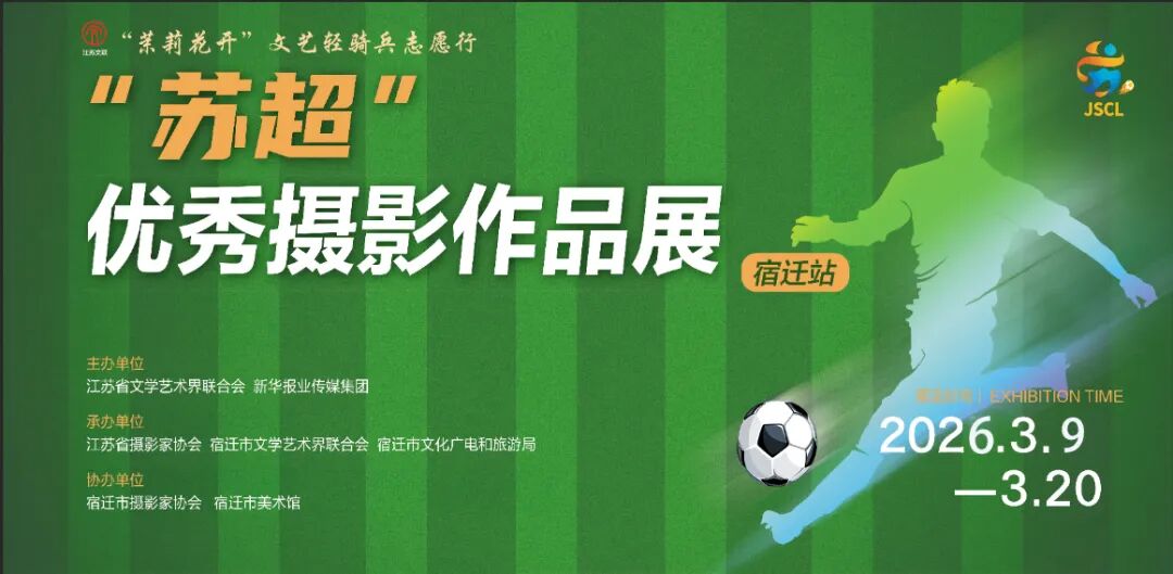 3月9日,“苏超”优秀摄影作品展(宿迁站)在宿迁市美术馆开展。本次巡展览由江苏省文联、新华报业传媒集团主办,江苏省摄协、宿迁市文联、宿迁市文广旅局承办,宿迁市摄影家协会、宿迁市美术馆协办。