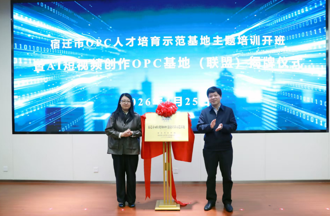 温士才、翟雪连共同为宿迁市AI短视频OPC创业培训示范基地揭牌