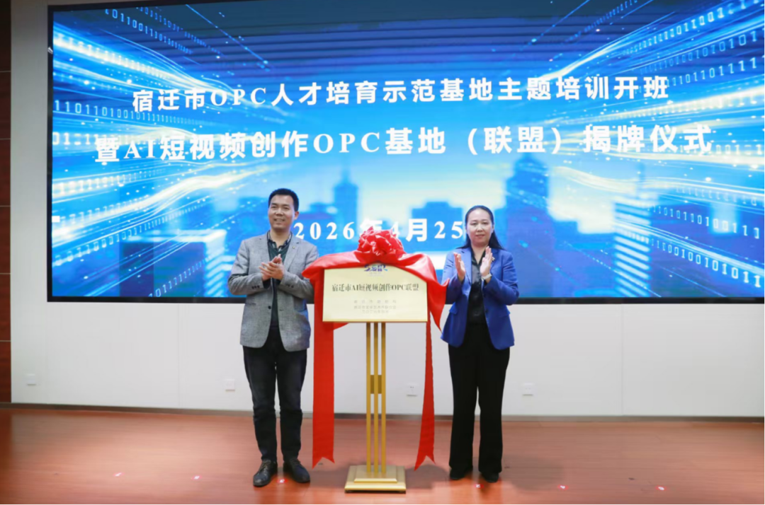 史巧红、柳春阳共同为宿迁市AI短视频创作OPC联盟揭牌