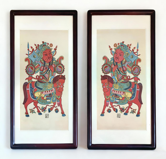 乙巳辞旧,丙午迎新。这幅门神以清代武强年画为蓝本,依托非遗海陵雕版技艺,采用繁复的饾版套印工艺创作而成。匠人甄选梨木、黄杨木制版,六色分版雕刻,以福建玉扣纸为载体,搭配窑烧松烟墨与苏州姜思序堂特级颜料,历时九月精雕细琢,最终关公、关胜的英武形象跃然纸上。新春贴之,护佑家宅康宁,纳福迎祥。