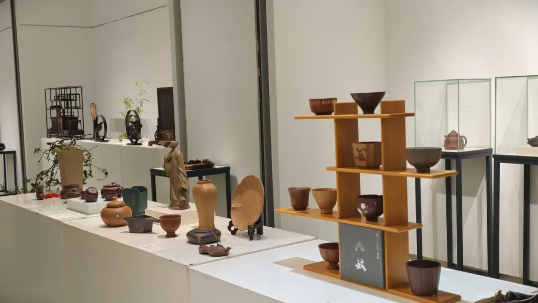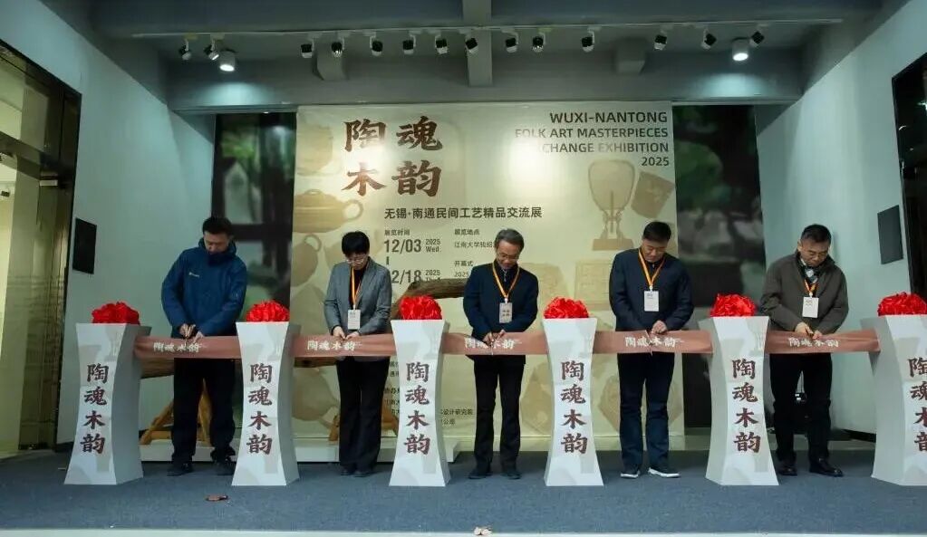 12月3日,由江苏省民协、无锡市文联、南通市文联主办,无锡市民协、南通市民协承办,江南大学设计学院、江南大学中国紫砂艺术设计研究院、宜兴紫砂九隽陶艺有限公司协办的“陶魂木韵”——无锡·南通民间工艺精品交流展在江南大学钱绍武艺术馆开幕。