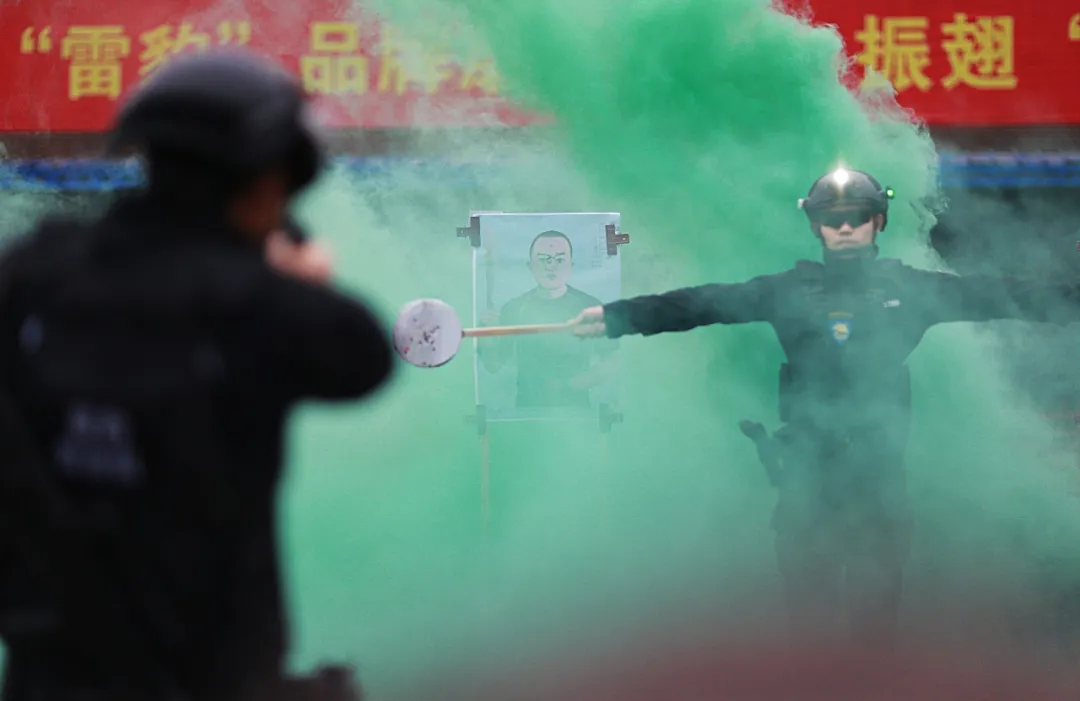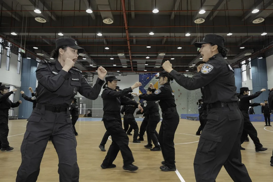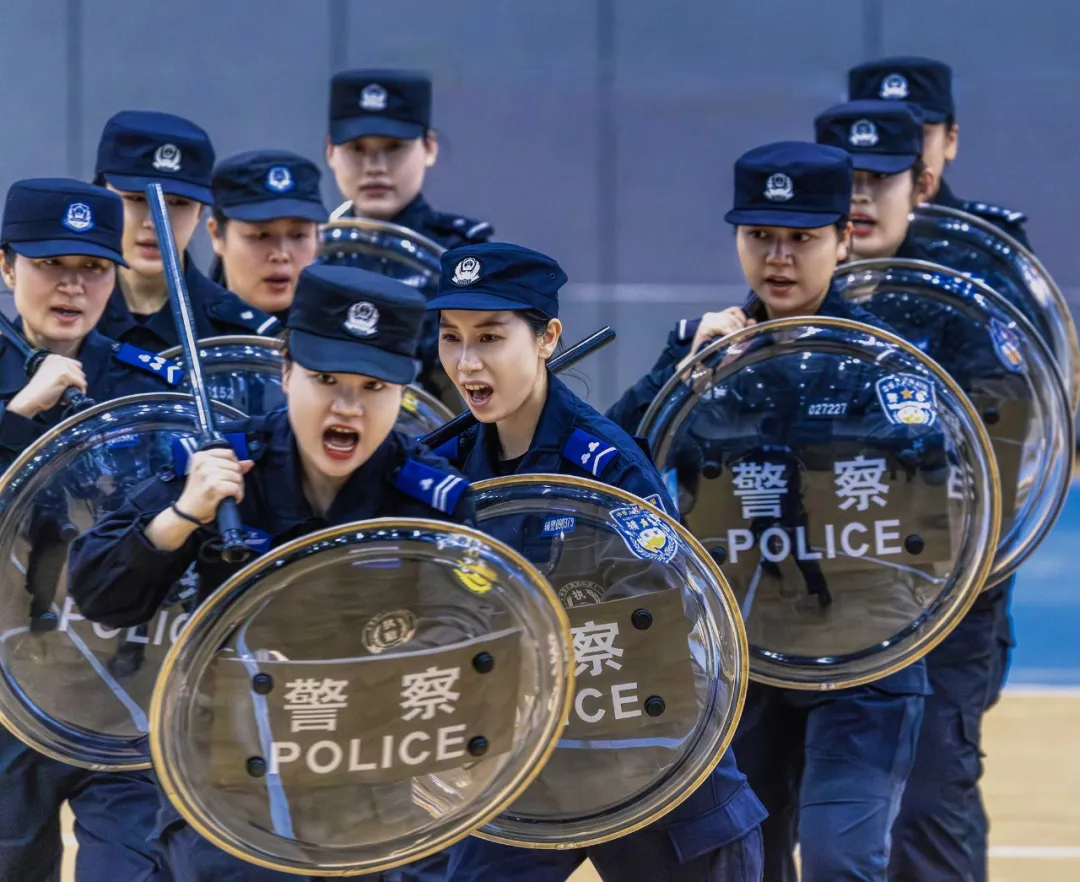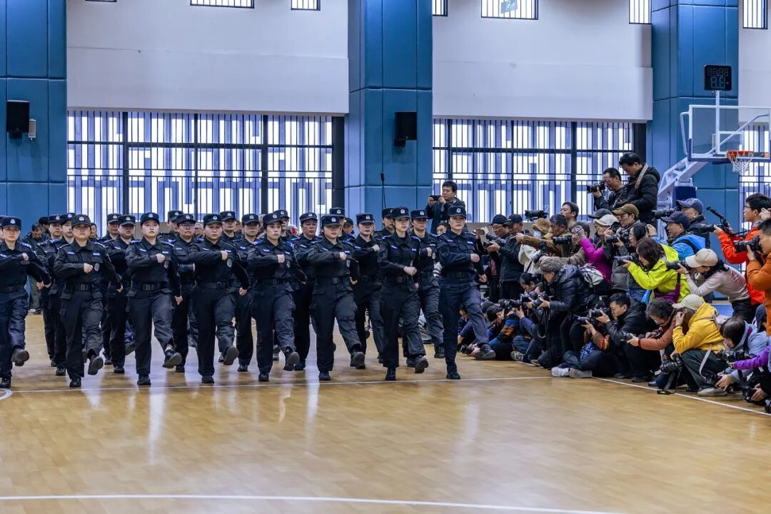 在巡特警支队训练馆内,30名身着藏蓝色警服的女队员们排成三列,随着教官的指令先后进行队列训练和行进表演。摄影家们用镜头捕捉这些“警花”在柔美娇容下那份守护平安的坚毅初心。
