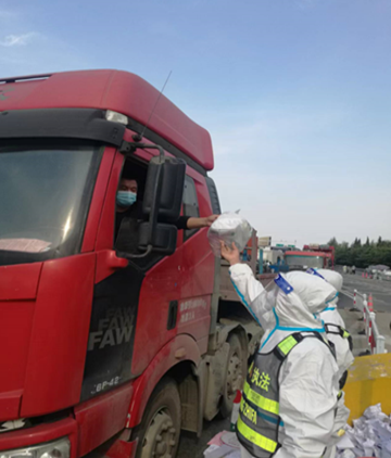 随着经开区复工复产的稳步推进,目前徐州东出入口日车流量达1400余辆(次)。徐州经开区党工委、管委会组织区住建局、交警大队等多家单位抽调工作人员驻守高速徐州东出入口,加快对货车和司乘人员的查验核查、分类接驳工作。市驻点机关干部克服困难,24小时不间断查验管控。作家们和前来采访的徐州报社、电视台等媒体记者在现场看到,防疫工作人员根据车辆、司乘人员行程,把来自中高风险地区和低风险地区的货车分别贴上黄、蓝封条,由交警护送到三公里外的接驳点停车场办理相关接收手续后全程护送;对来自上海、吉林等重点涉疫地区的货车贴上红色封条,由专职接驳人员全程护送,实行闭环管理。