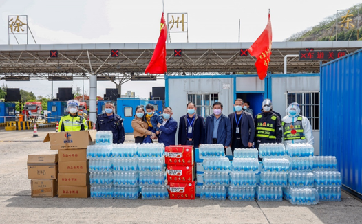 正当作家们准备离开高速卡口时,省双拥模范、上海铁路局徐州货运中心职工陈永军一行匆匆赶来,为日夜坚守岗位的志愿者们送上消毒液、矿泉水、食品等贴心慰问品。随后作家们来到接驳点停车场,现场见证了经开区恩典应急救援队志愿者们冒着健康风险,免费给远道而来的司机送来热饭热菜、逐车进行消杀,纷纷赞叹他们为复工复产展示的义举和大爱。