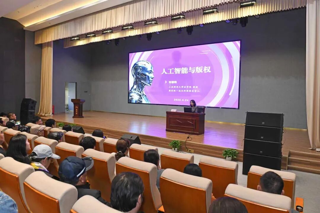 4月24日下午,由徐州市版权局、徐州市文联主办、云龙区委宣传部、云龙区文化体育和旅游局承办,云龙区文化馆协办的“徐州市文联知识产权宣传周”系列活动之“人工智能与版权保护”专题讲座在云龙区文化馆学术报告厅举办,邀请江苏师范大学法学院教授张春艳担任主讲,吸引了来自全市12个文艺家协会的文艺工作者和社会各界人士近200人到场聆听,徐州市文联党组成员、副主席林昊出席,徐州市版权局、徐州市文联、云龙区委宣传部、云龙区文化体育和旅游局相关负责同志参加活动。