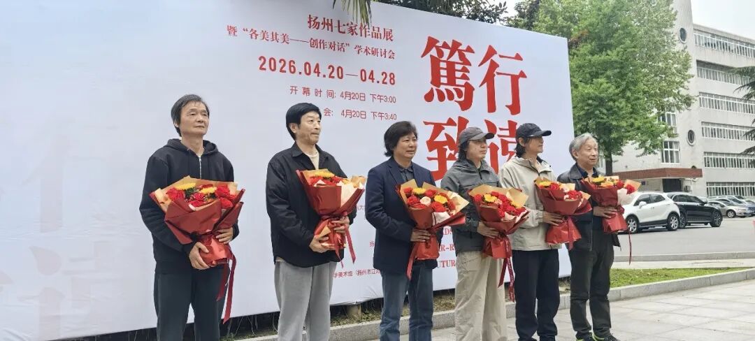 4月20日下午,由扬州大学美术与设计学院、扬州市美术家协会主办,扬州大学美术馆承办的“笃行致远——扬州七家作品展”开幕式在扬州大学路南校区隆重举行。开幕式由扬州大学美术与设计学院党委书记林超主持,扬州大学副校长韩杰,扬州市文联党组成员、副主席、三级调研员吴乃怀,美术与设计学院院长谢玮分别讲话。扬州市美协主席李玫、常务副主席刘玉海、副主席陈侬、秘书长梁鹤新出席开幕式,扬州大学、扬州市档案局、扬州市国画院、扬州晚报等单位领导、各界朋友、参展艺术家、师生代表近两百人参加了本次活动。