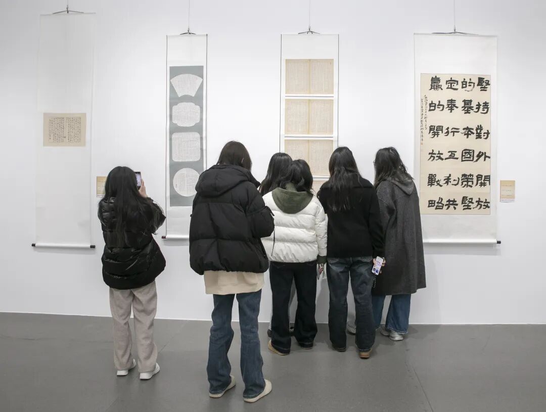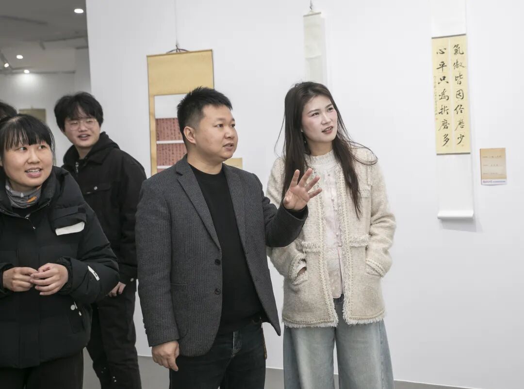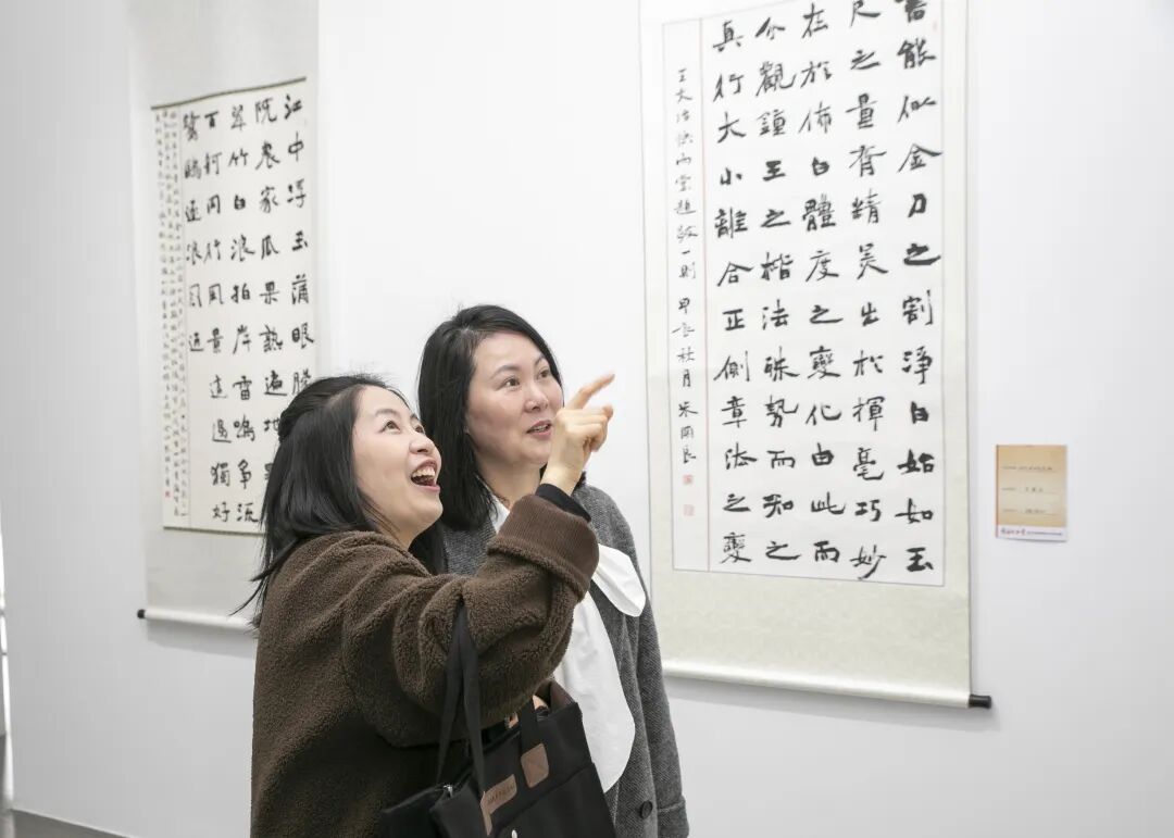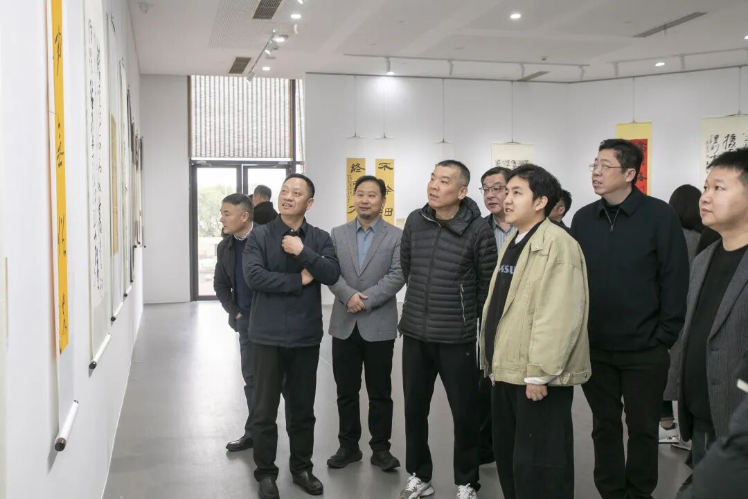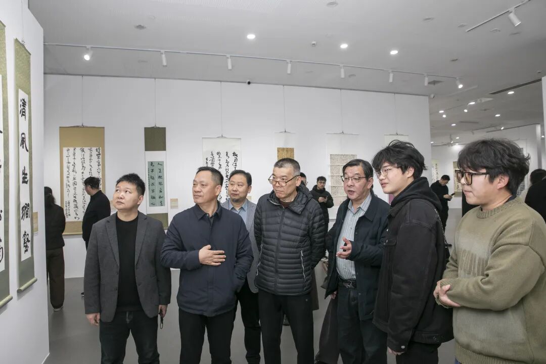 市书法家协会、市新文艺群体联合会、丹徒区文联、丹徒区美术馆、镇江新联会等单位负责人,以及参展作者、亲友团和镇江高专艺术学院学生近150人齐聚现场,共赏笔墨风华,共话青春艺术。