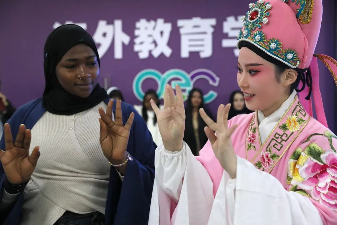 本次活动打造了一场“可触摸、可参与、有温度”的戏曲盛宴,让留学生在轻松愉悦的氛围中,深度感受戏曲艺术的魅力。演员一亮相,瞬间就将现场氛围拉满,让留学生们第一眼便被戏曲的美感所吸引。