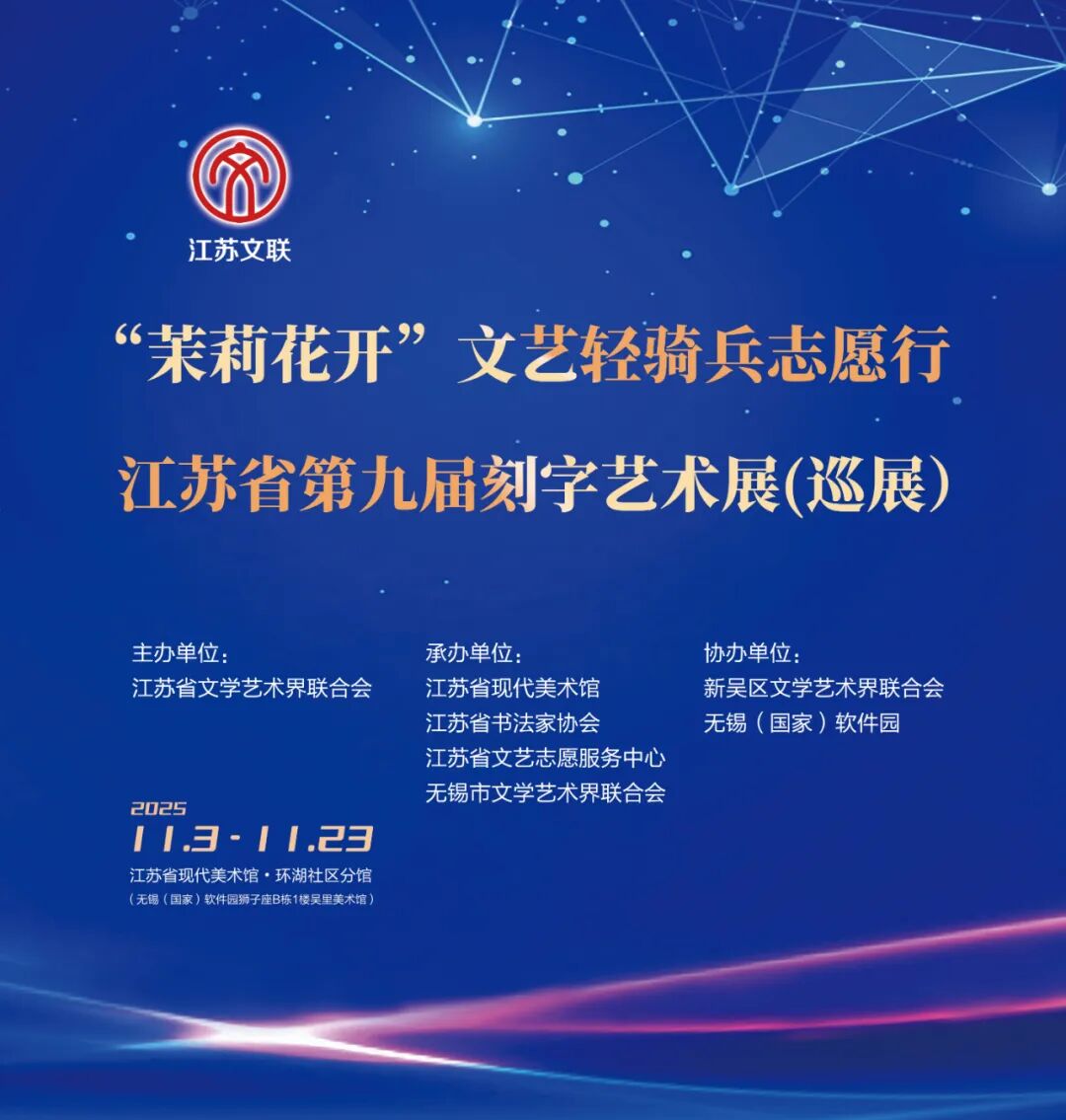 在江苏省文联的指导下,2024年江苏省现代美术馆率先在全省设立13家村级美术馆分馆,2025年在全省又新设立33家村级美术馆分馆。“江苏省第九届刻字艺术展”是江苏省现代美术馆在环湖社区分馆的首展,展览由江苏省文联主办,江苏省现代美术馆、江苏省书法家协会、江苏省文艺志愿服务中心、无锡市文联联合承办。