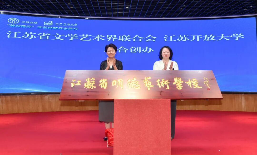江苏省文联联合江苏开放大学创办江苏省明德艺术学校,图为揭牌仪式现场