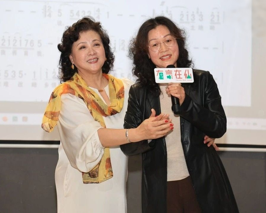 讲座伊始,孙振华老师以江苏经典民歌《茉莉花》为例,深入浅出地讲解语言韵律与音乐表达之间的紧密联系。在讲解呼吸与共鸣时,她引导大家体会 “吸气时喉咙自然打开” 的科学状态,并耐心分享演唱心得:不必一开始就刻意追求发声位置,而要学会用耳朵判断、用想象构建场景、用情感诠释歌曲,才能自然呈现出动人的演唱效果。