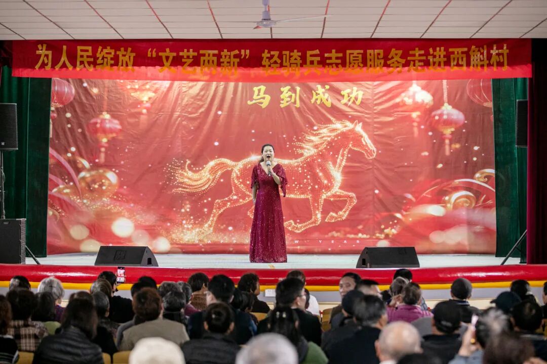 4月23日,镇江市丹徒区高资镇西斛村文化大礼堂内欢声笑语、掌声雷动,镇江市新文艺群体联合会、丹徒区文联联合主办的为人民绽放“文艺两新”轻骑兵志愿服务演出火热开演。新文艺群体艺术家们带着精品力作走进新农村,用精彩纷呈的文艺表达点亮乡村生活,以文艺力量赋能乡村振兴,尽显新时代“文艺两新”的责任与担当。市文联党组成员、秘书长洪琦,市委宣传部文化产业处副处长、丹徒区高资镇西斛村第一书记范洋,市新文艺群体联合会主席赵羽,以及丹徒区文联、市新文艺群体联合会相关负责同志和近百位村民观看了演出。演出由江苏省文联委员、市舞蹈家协会主席葛宇豪担任导演。