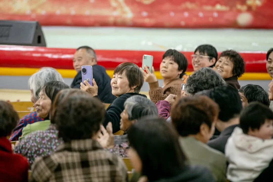下午两点半,演出在聲融合室内乐团激昂的器乐合奏《九州同》中正式拉开帷幕,悠扬旋律瞬间点燃现场热情。随后,节目轮番登场、亮点纷呈:器乐合奏《渡情》婉转缠绵,江南韵味流淌心间;舞蹈《烟雨江南》舞姿轻盈,勾勒水乡温婉风情;声乐《祖国》深情嘹亮,唱出对家国的赤诚热爱;魔术表演奇幻有趣,引得现场老少连连惊叹;萨克斯独奏《人世间》旋律治愈,传递人间温情;古典舞《锦画》衣袂翩跹,尽显传统美学底蕴;京剧《红灯记》选段韵味十足,国粹魅力感染全场;非遗变脸瞬息万变,精湛技艺赢得满堂喝彩……11个节目涵盖器乐、舞蹈、声乐、魔术、戏曲、非遗等多种形式,兼具思想性、艺术性与观赏性,台上演员倾情演绎,台下村民看得入神、笑得开怀,掌声与喝彩声此起彼伏,幸福洋溢在每个人脸上 。
