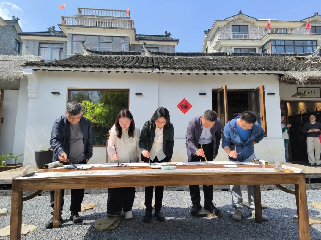 启动仪式现场暖意融融,文艺气息浓郁雅致。与会嘉宾与文艺家共同携手书写“吴江区百名文艺家扎根田野”书法长卷,鲈乡琴社现场演绎《流水》等经典古琴曲目。活动同步开展古琴雅集、户外美术写生等特色活动,文艺创作者们挥毫泼墨、抚琴抒怀,沉浸式演绎传统文化魅力。周边村民纷纷驻足观赏、近距离体验,在动静结合的文艺氛围中,感受传统文化与田园生活碰撞交融的独特韵味。