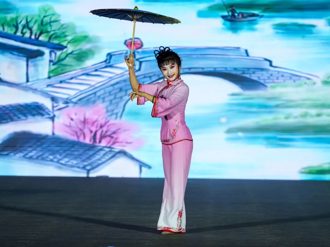紧接着,杭州越剧传习院、二级演员王焕玉登台,一曲《梁祝·回十八》将“第二国剧”的婉转与深情演绎得淋漓尽致,让在场观众沉醉于经典戏曲的魅力之中。
