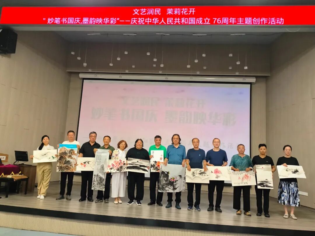 ▲9月26日,文艺润民 茉莉花开 ——“妙笔书国庆,墨韵映华彩”庆祝中华人民共和国成立76周年主题创作活动,在靖江市骥江东路团结路社区文化礼堂举办。本次创作作品将于国庆期间在社区展厅正式开展。