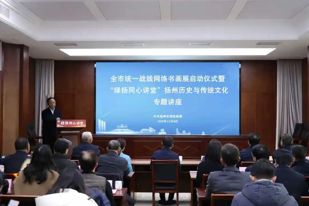 ▲12月8日,扬州市统一战线网络书画展启动仪式暨“绿扬同心讲堂”扬州历史与传统文化专题讲座成功举办,旨在充分展示扬州市经济社会改革发展成果,进一步凝聚团结奋进之力。