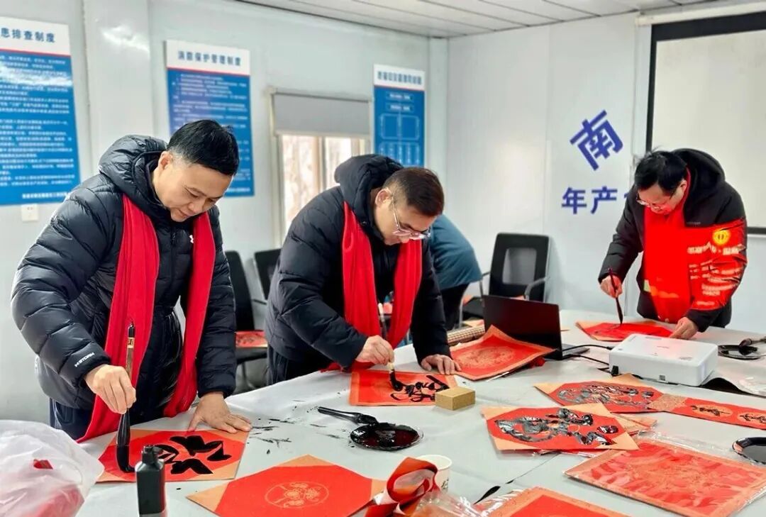 ▲1月21日上午,崇川区文联联合区总工会组织区书法家协会的书法家们走进顺安隆新帝克项目工地,以“翰墨迎新春·温暖润工地”为主题,为30余名一线建筑工人现场创作春联福字,用笔墨书香传递新春祝福,为寒冬里坚守岗位的建设者们送上独特的文化暖意。