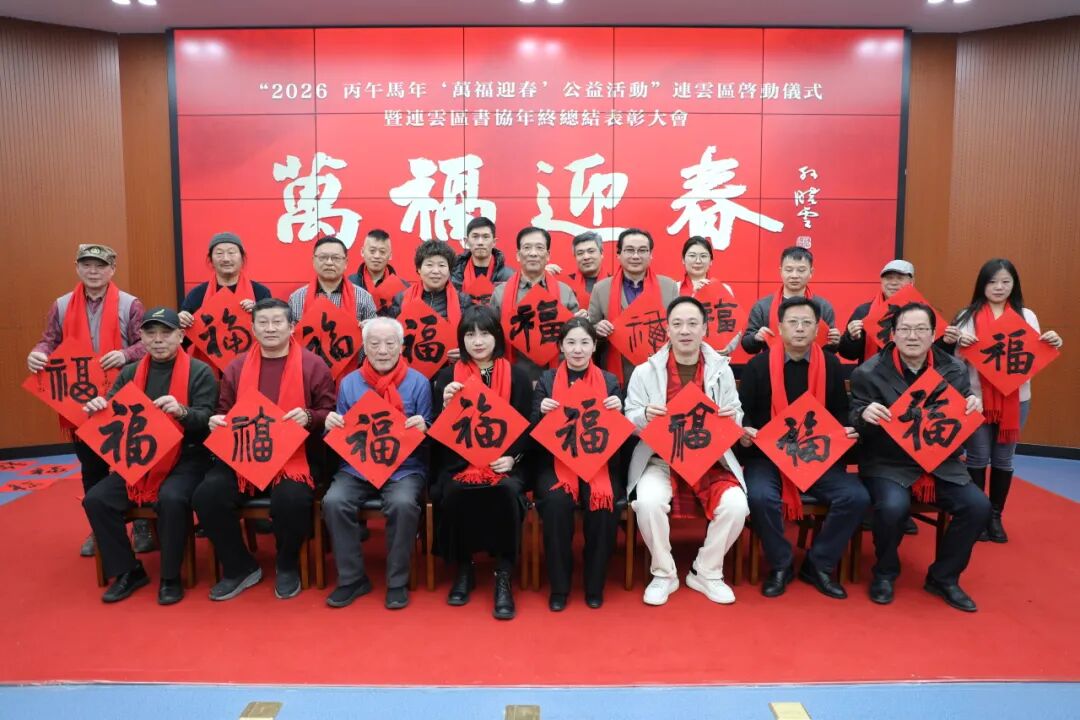 ▲1月16日下午,2026丙午马年“万福迎春”公益活动连云区启动仪式在连云区文化馆举行,连云区书协同步举行了年终总结表彰大会。
