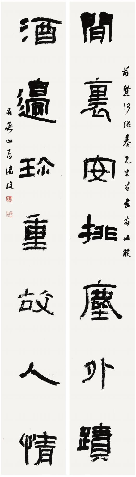2023年《竹里花间联》入展2023中国书法年展前100名;2023《碧海芦花联》入展全国第九届楹联书法展; 2024年《诗阁画堂联》入展全国第十三届书法篆刻展。