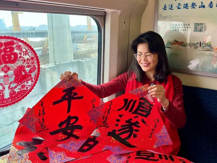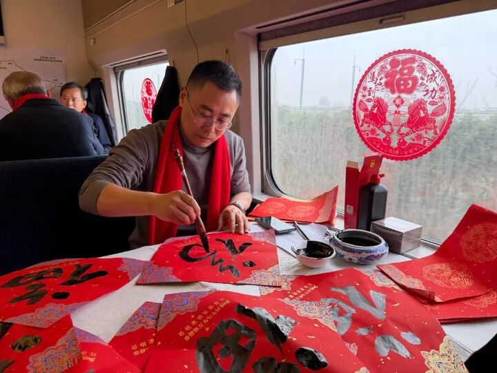 “福至运来 情满旅途——江苏省千名书法家送万福进万家”活动是中国书协“万福迎春”公益活动的重要组成部分,也是省书协持续打造的特色文化惠民品牌,迄今已连续成功举办九年,受到社会各界的高度认可和广大群众的热烈欢迎,并连续四年在中央广播电视总台新闻联播报道。除今日上午的全省联动外,后续一周省书协还将组织书法志愿者开展持续送福服务,让祝福伴随更多人的旅途。今年铁路方面再次协调长三角“超级环线”高铁列车作为新春送福专列,长三角三省一市书协组织书法名家依次登车送福,在旅途中为旅客现场创作福字春联。
