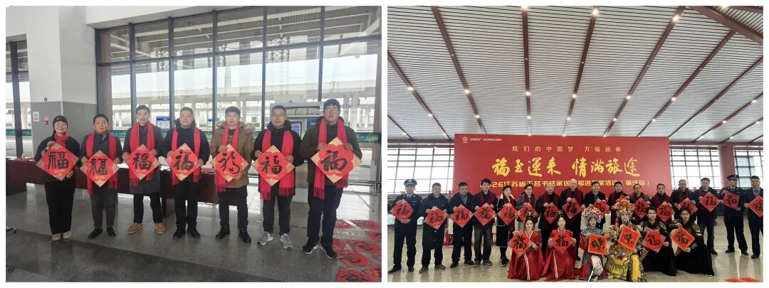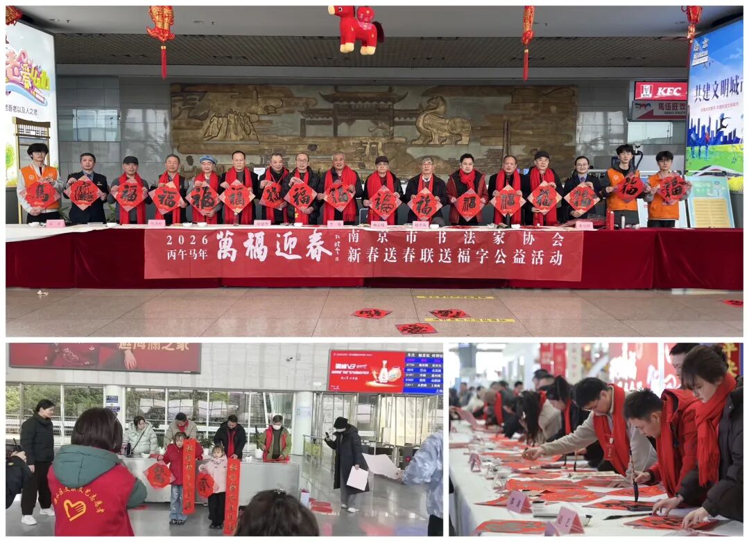 2月1日,由江苏省文学艺术界联合会、新华报业传媒集团、江苏省广播电视总台、江苏省书法家协会、中国铁路上海局集团公司联合主办,江苏各市书法家协会、铁路南京站、江苏省广播电视总台城市频道协办的“万福迎春”2026“福至运来 情满旅途”——江苏省千名书法家送万福进万家活动启动仪式在南京南站举行。
