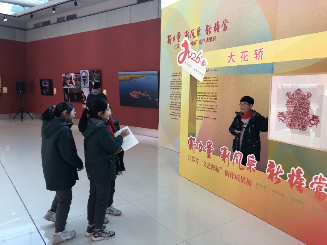 近日,金陵河西学校小学部三至六年级1500余名学生走进江苏省现代美术馆,参观由江苏省文联主办,省文联事业部、省美术家协会、省民间文艺家协会、省摄影家协会、省书法家协会、省现代美术馆联合承办的“新力量 新风采 新担当——江苏省‘文艺两新’创作成果展”,特邀参展作者夏慧现场导览。通过艺术家的生动讲解与沉浸式互动,学生们深入领略了艺术魅力,有效提升了文化自信与审美素养,活动收获显著。