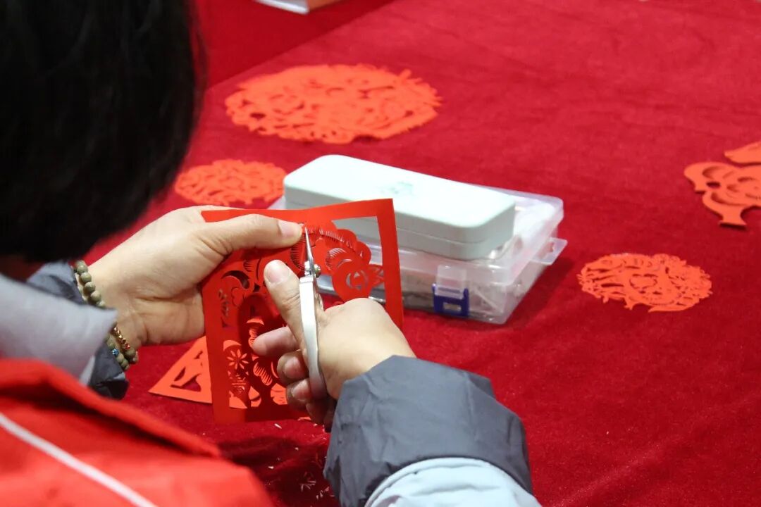 活动现场暖意融融,书画家们凝神静气、笔走龙蛇,将马年生肖元素与“福禄安康”的美好祝福巧妙融合,耐心询问群众的需求,按需创作,一幅幅寓意吉祥的春联、一个个苍劲有力的“福”字被村民举在手中,定格下暖心的瞬间。扬中市民协的剪纸老师们也在现场展示指尖上的非遗技艺,剪刀翻飞间,纸屑轻扬,骏马奔腾、元宝纳福、五福临门等元素被巧妙融入剪纸作品中,既展现了传统非遗的魅力,也让村民感受到浓浓的年味与温暖。