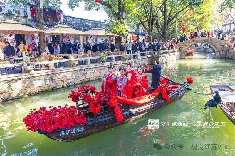 2026年2月17日,苏州市吴江区,市民、游客在同里古镇观看水上婚礼巡游。张锋 摄