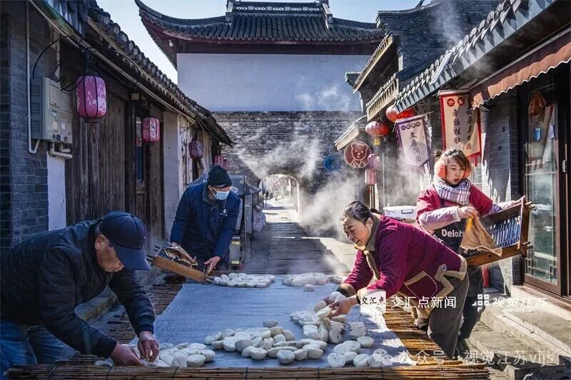2026年2月8日,南通余东老街,人们忙着蒸馒头,热气腾腾中,传统年味弥漫。蒋跃丽 摄
