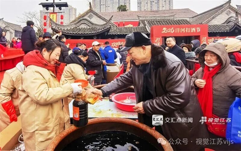 2026年2月10日,宿迁新盛街热闹非凡,打福酒、打甜油、写春联等活动吸引众多市民参与。沈红荣 摄