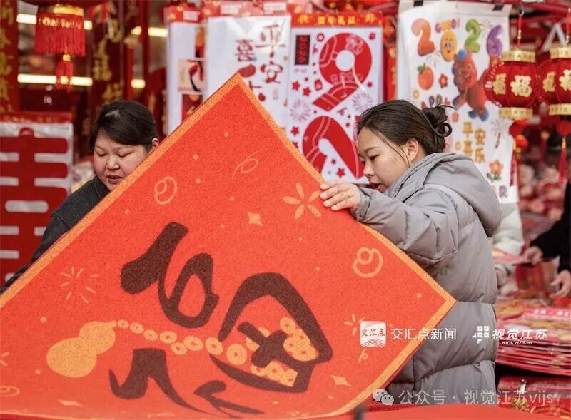 2026年2月11日,市民在淮安市汇通市场选购春联、“福”字等喜庆年货,处处洋溢着迎新春的热闹氛围。贺敬华 摄