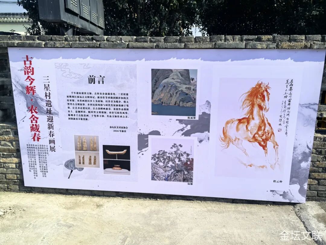 “古韵金辉·农舍藏春”三星村遗址迎新春画展同步开展,亦是区美协艺术家驻村创作的一次成果检阅。画展收录的30幅佳作,均为画家们扎根三星村、深入田间地头采风创作而成。作品紧扣本土文化根脉、融合浓浓新春氛围,将三星村的田园风貌、历史底蕴与年味巧然相融。