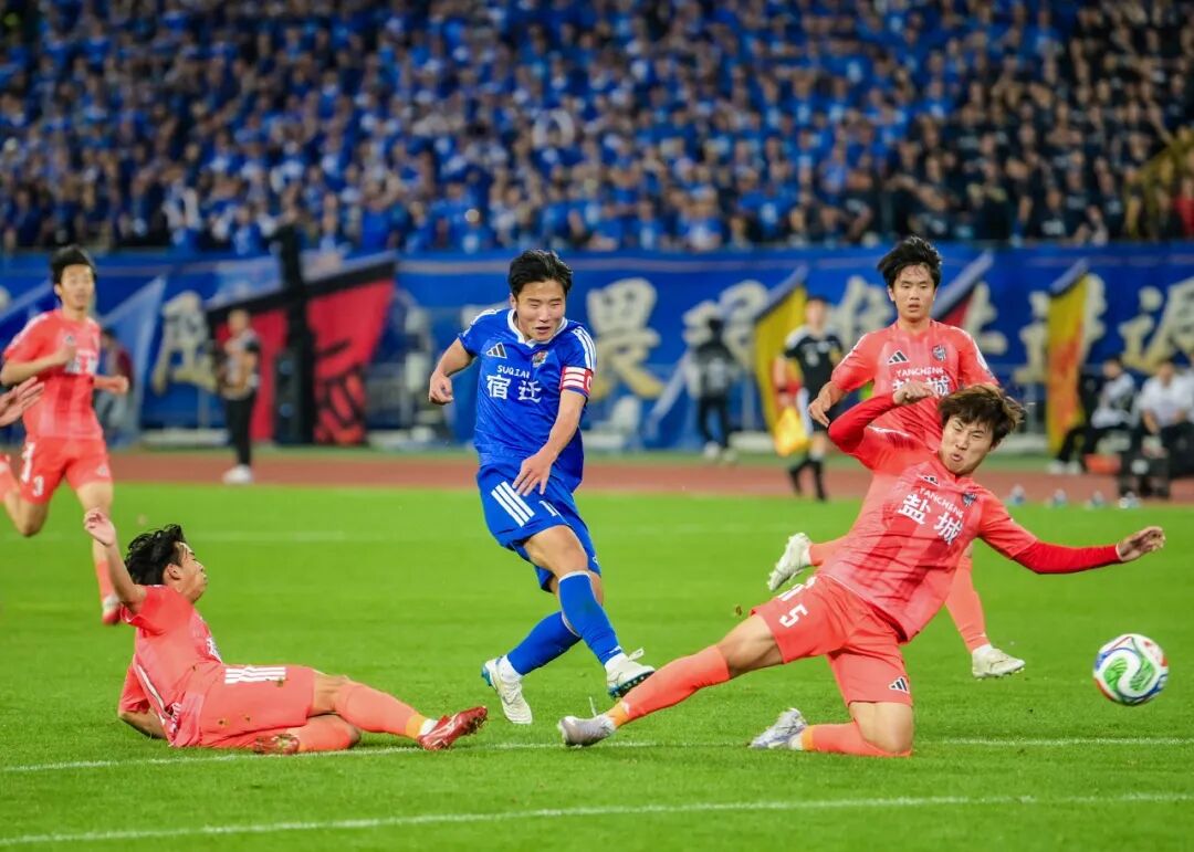 宿迁队球员卜飞扬越位进球。王帅甫 摄