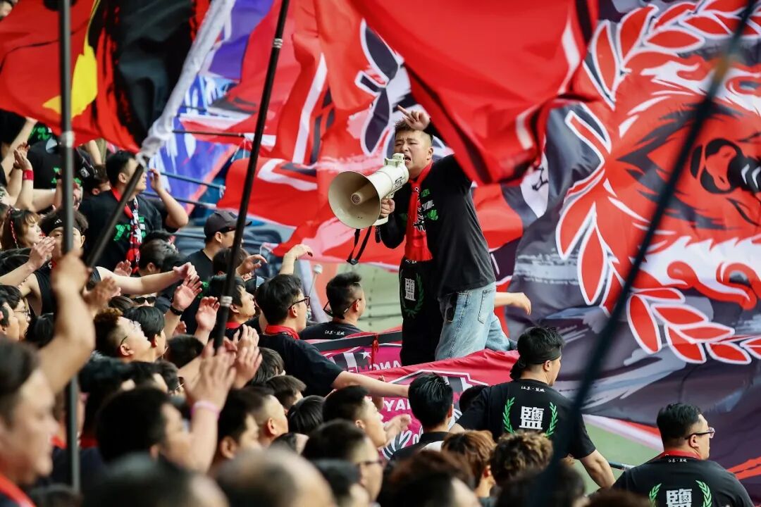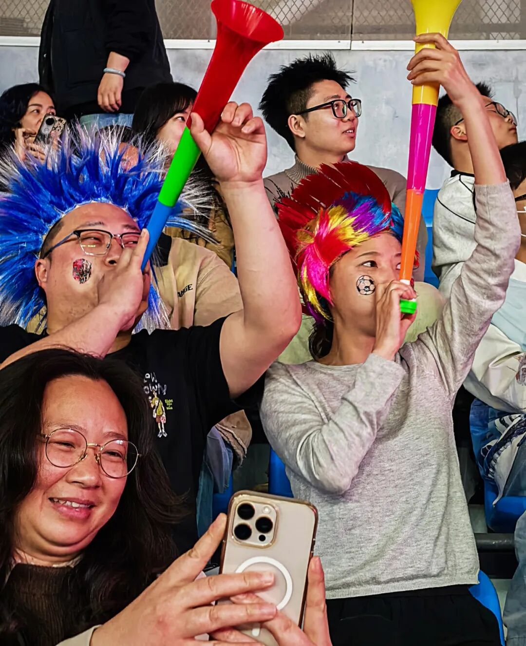 2026年4月25日,宿迁市苏宿工业园区的球迷们齐聚“苏超”第二赛场,为自己的城市球队呐喊助威。魏琦原 摄