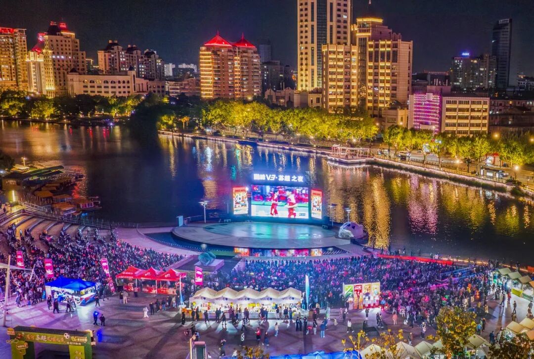 2026年4月25日晚,南通市民齐聚濠河边上的环西文化广场共赴足球盛宴。黄旭 摄