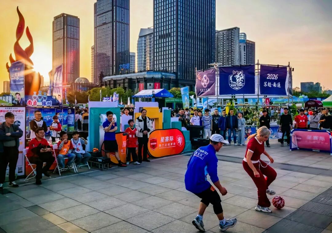 2026年4月25日,南通体育会展中心北广场两人足球对决表演。瞿德均 摄
