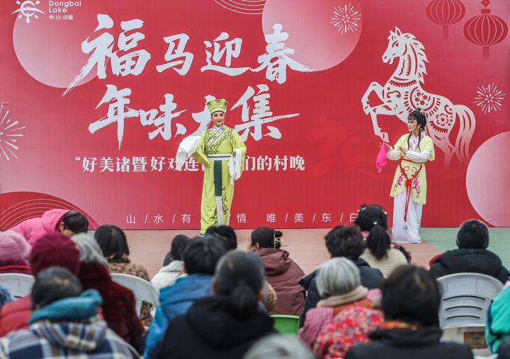 这是2026年1月23日在浙江省诸暨市东白湖镇乡村年味大集上拍摄的戏曲演出。新华社记者 徐昱 摄