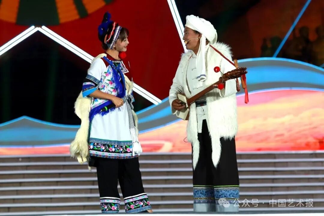 【表演者李宝妹、姜宗德谈创作】传统剑川白族东山放羊调,男女对唱音韵高亢,歌词生动简炼。为了深入发掘其艺术价值,我们两人从2018年开始,花了五年时间深入到东山白族各村寨进行采风调查。这期间,我们从一位年逾八十岁的老大娘口中听到了一个有趣的传说:从前有一个小伙子去放羊,由于羊多难以招呼,有两三只闯进别人家荞麦地里大吃特吃,被这家的姑娘逮了个正着,姑娘小伙为此吵了起来,互不相让,然后改用对歌来互骂。最后,小伙子认错,赔理道歉,“吃了三升还三斗,哥我心甘情愿赔”,此举也获得了姑娘的谅解,后来两人相见就用对唱交流,越唱越有情,最终结为伉俪。这个故事打动了我们,也促使我们对东山放羊调进行反复的加工提炼,并把我们听到的故事情节移入其中,这首作品也如愿创作出来。