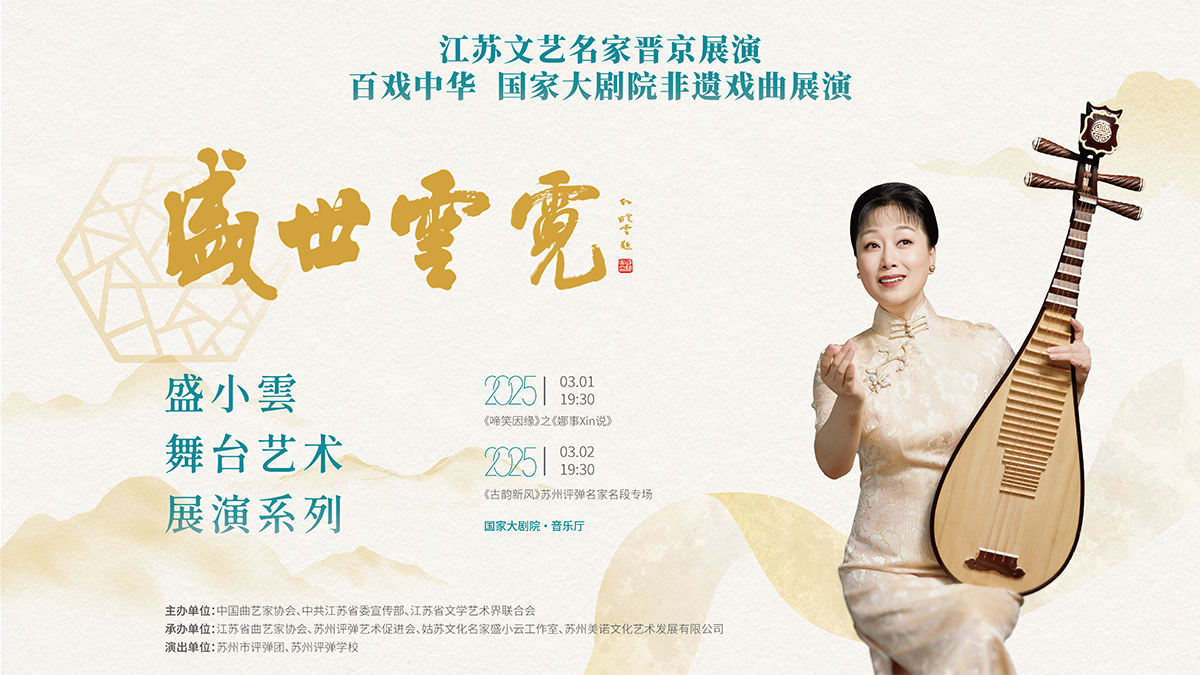 3月1日至2日,“紫金文化奖章”获得者盛小云领衔的江苏文艺名家晋京、百戏中华国家大剧院非遗戏曲——《盛世云霓》盛小云舞台艺术展演系列将于国家大剧院音乐厅举行。